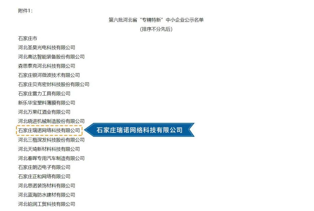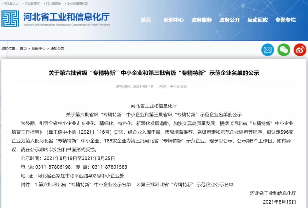 8月19日,河北省工业和信息化厅公布了第六批河北省“专精特新”中小企业公示名单,意昂4凭借强大的技术创新能力和市场认可优势获得河北省“专精特新”企业称号!