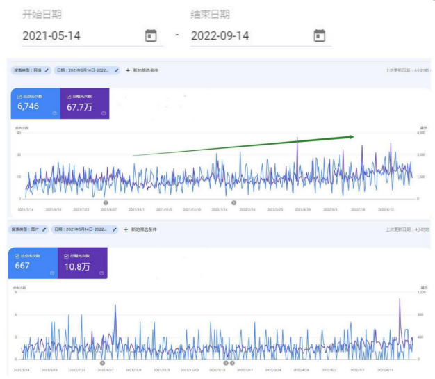 2021年5月—2022年9月网站曝光情况,呈稳定上升趋势