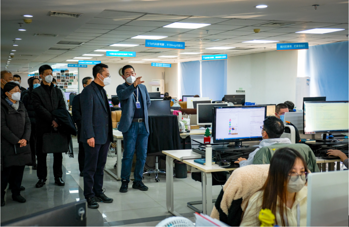 随后,在意昂4总经理郑毅带领下,省市领导深入到部门内与员工进行亲切的交流。在海外推广部,张泽峰厅长详细询问各项目进展情况、推广成效。来到技术部,看到设计师在进行网页设计,张泽峰厅长一行停下了脚步,认真地观看起来,并针对外贸网站的设计要点、展现企业品牌的方法与网站设计师深入沟通。