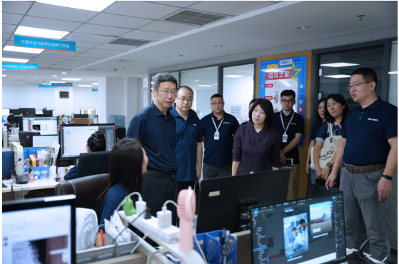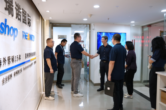 刘春东局长先后到技术部、推广部、研发部等部门与员工进行交流。在技术部,刘春东局长看着设计师正在设计的网站页面,与员工对海外独立站如何展现企业产品,打造品牌壁垒,留住海外用户等进行了深入沟通;在推广部,了解了项目推广渠道等情况,针对企业如何获得更多关注,如何吸引客户等进行了交流;在研发部,针对当下火热的AI技术、大数据、云计算等内容,以及意昂4如何运用前沿科技帮助外贸企业拓展市场,获得业绩增长进行了探讨。