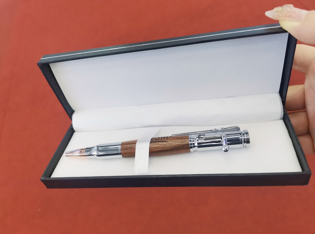 我碰到了客户,天津伊润意昂设备有限公司的朋友,他送给意昂4礼物:一支相当好看的笔,还要我带一支,给没来参加广交会的同事。