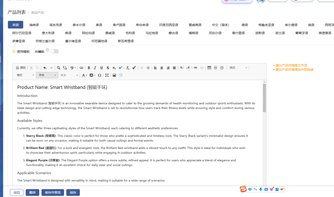 产品详情:在撰写产品详情时,不必费尽心思琢磨字眼,无论是产品名称还是内容详情,都可以利用AI生成。要是想让谷歌“青睐”这个页面,还能够使用AI进行SEO优化,合理布局关键词。