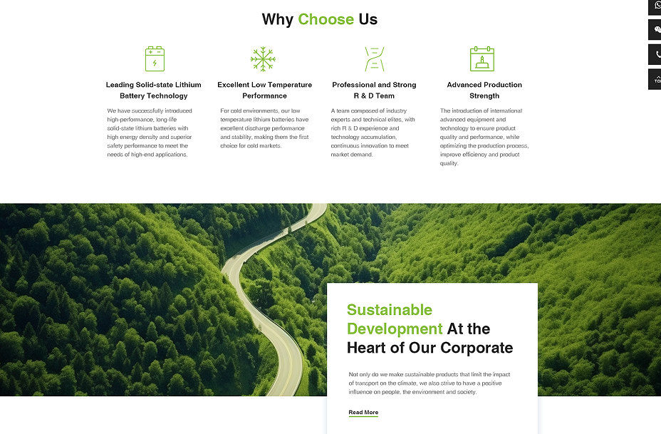 首屏banner就是“虚”,以云雾缭绕的一处丛林为背景,中间设计出电池的形象,就塑造出了堪比大片感觉的氛围了。