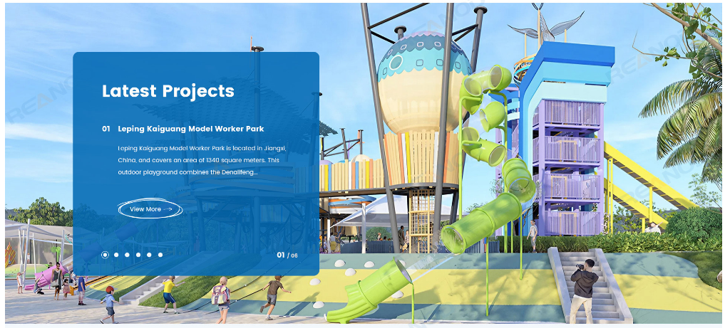 今天分享的案例,来自一个广州的某大型游乐设施制造企业。游乐设施面向的群体是儿童,这也决定了网站需要塑造快乐活泼的氛围,接下来意昂4针对主页设计进行拆解,看看设计师如何用巧思调动情绪。