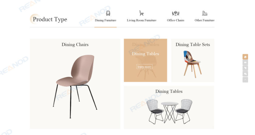 在产品类型展示板块中,设计师巧妙地为每种产品类型设计了独特的图标(ICON)。当鼠标悬停在不同ICON上时,下面会动态展示出相应产品。而当鼠标进一步划过具体产品时,产品名称会立刻突出显示,这种交互设计不仅增强了用户体验,更提升了页面的灵动性。