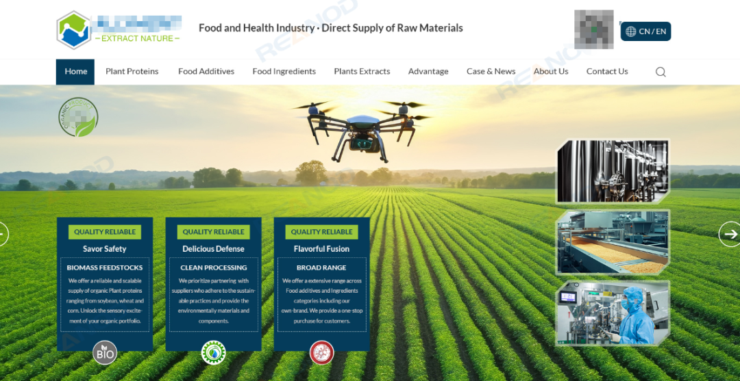 网站一开,满屏鲜绿扑面而来——阳光下的作物正生长,无人机掠过天际,视线瞬间被拉到万里田野。左侧是“一望无际”的生机,右侧紧挨三张高清厂房内工作实景。辽阔与精密同框,外商一眼就能读出潜台词:这家企业既有规模,又有自己的生产制造底气。